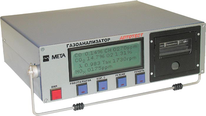 Некоторые модели автомобильного газоанализатора Автотест-01 оснащаются каналами для измерения О2 и СО2. Газоанализатор Автотест 01 высокопроизводителен, прост и надежен в эксплуатации. Возможна установка встроенного принтера, автослива конденсата в системе пробоподготовки, а также подключение выносного табло. Автомобильный газоанализатор Автотест может включаться в линию технического контроля станций диагностики, а также с газоанализатором можно работать через персональный компьютер (интерфейс RS-232, программное обеспечение "Автотест").